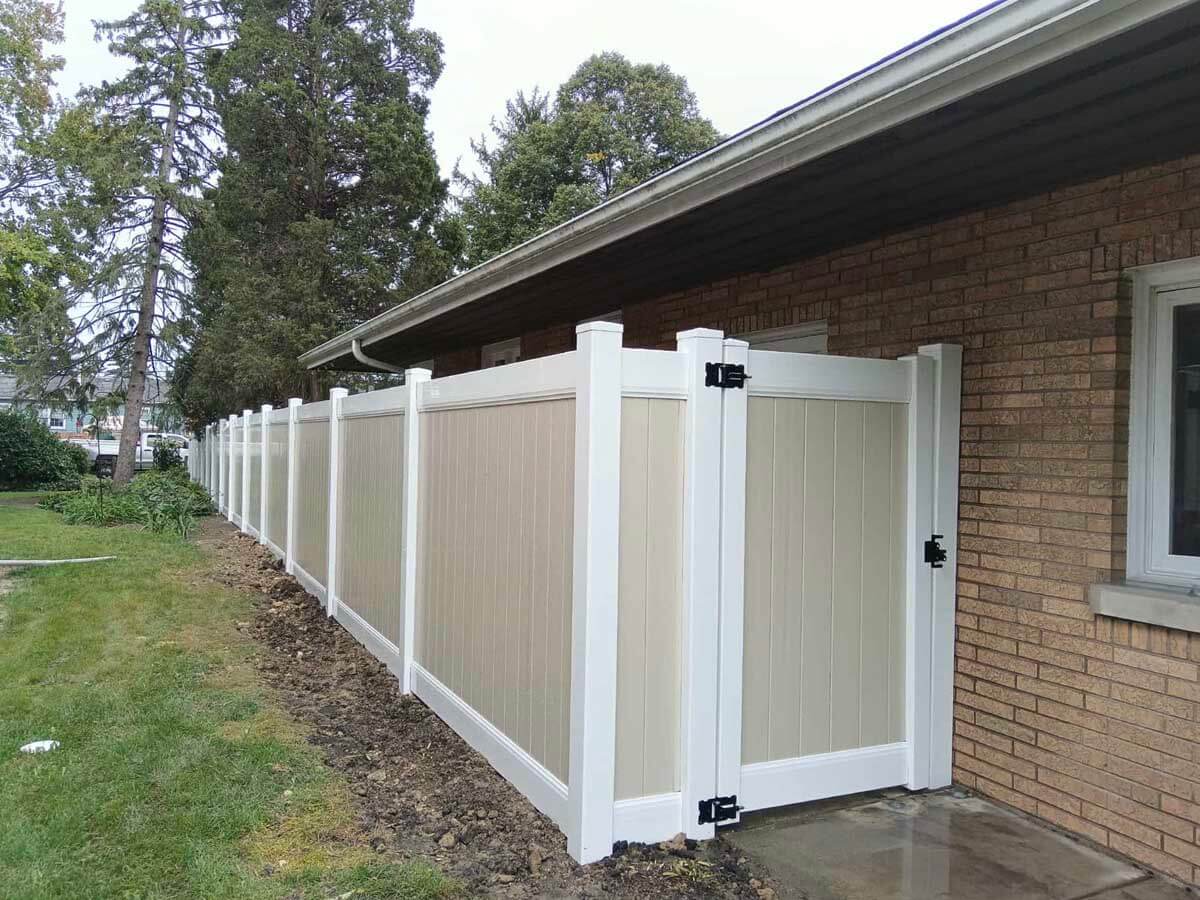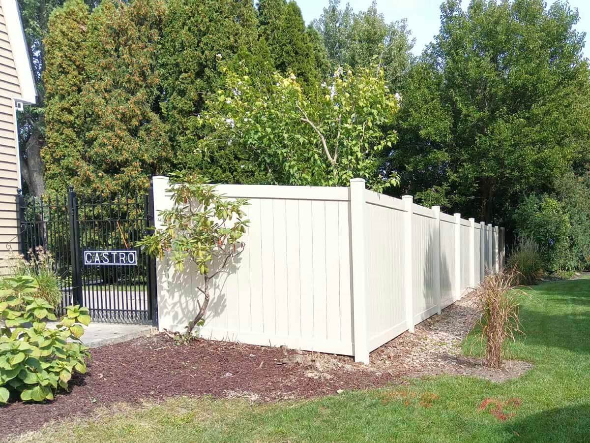 At Modern Fencing Company, our best-selling vinyl fence features a warm, cozy Almond finish. Home and business owners love our full-privacy designs, which feature tight, gapless boards that block wind, noise, and unsightly views. Make your backyard your own with our popular, like-home vinyl fences!